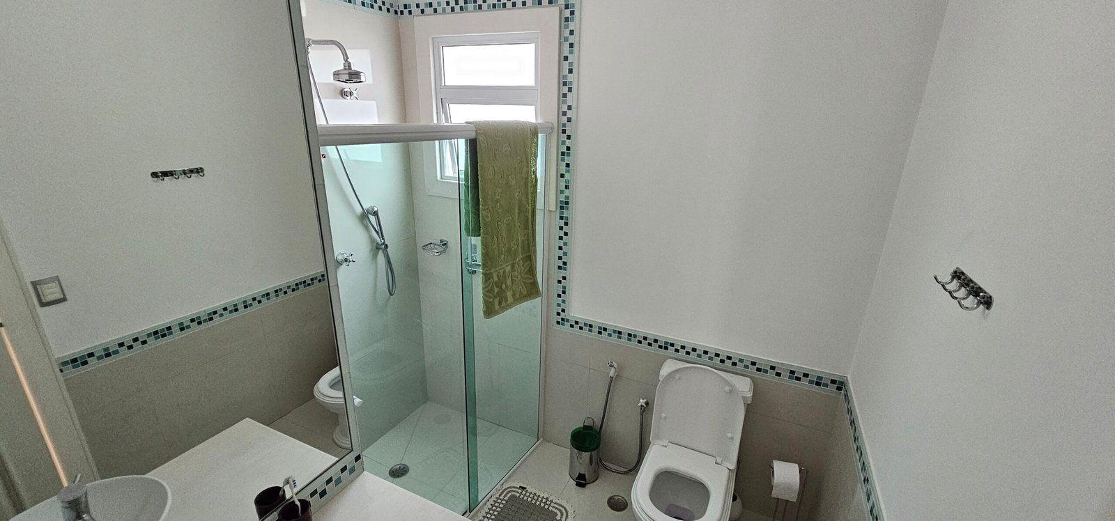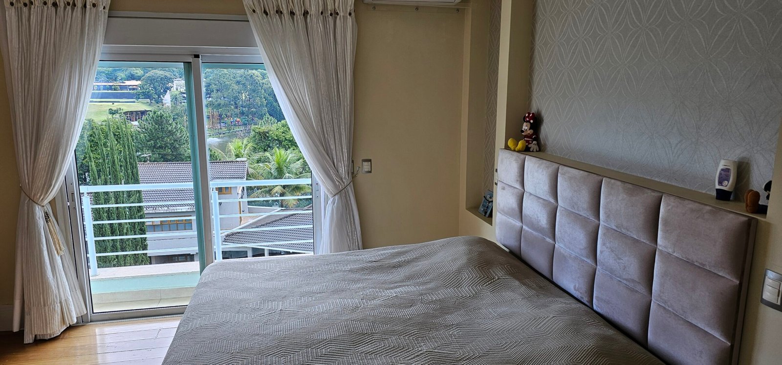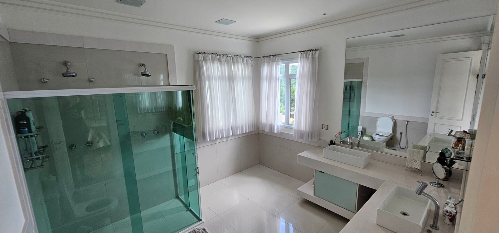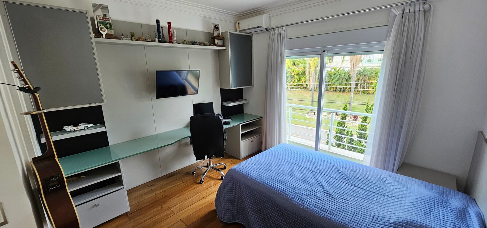 No andar superior, a casa conta com quatro suítes, todas climatizadas sendo três delas com varandas.