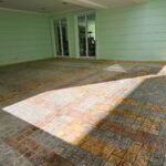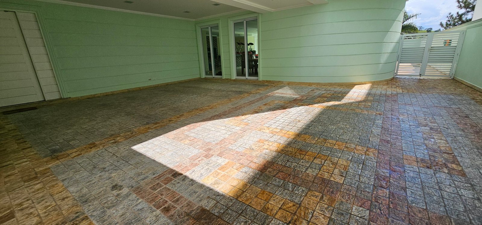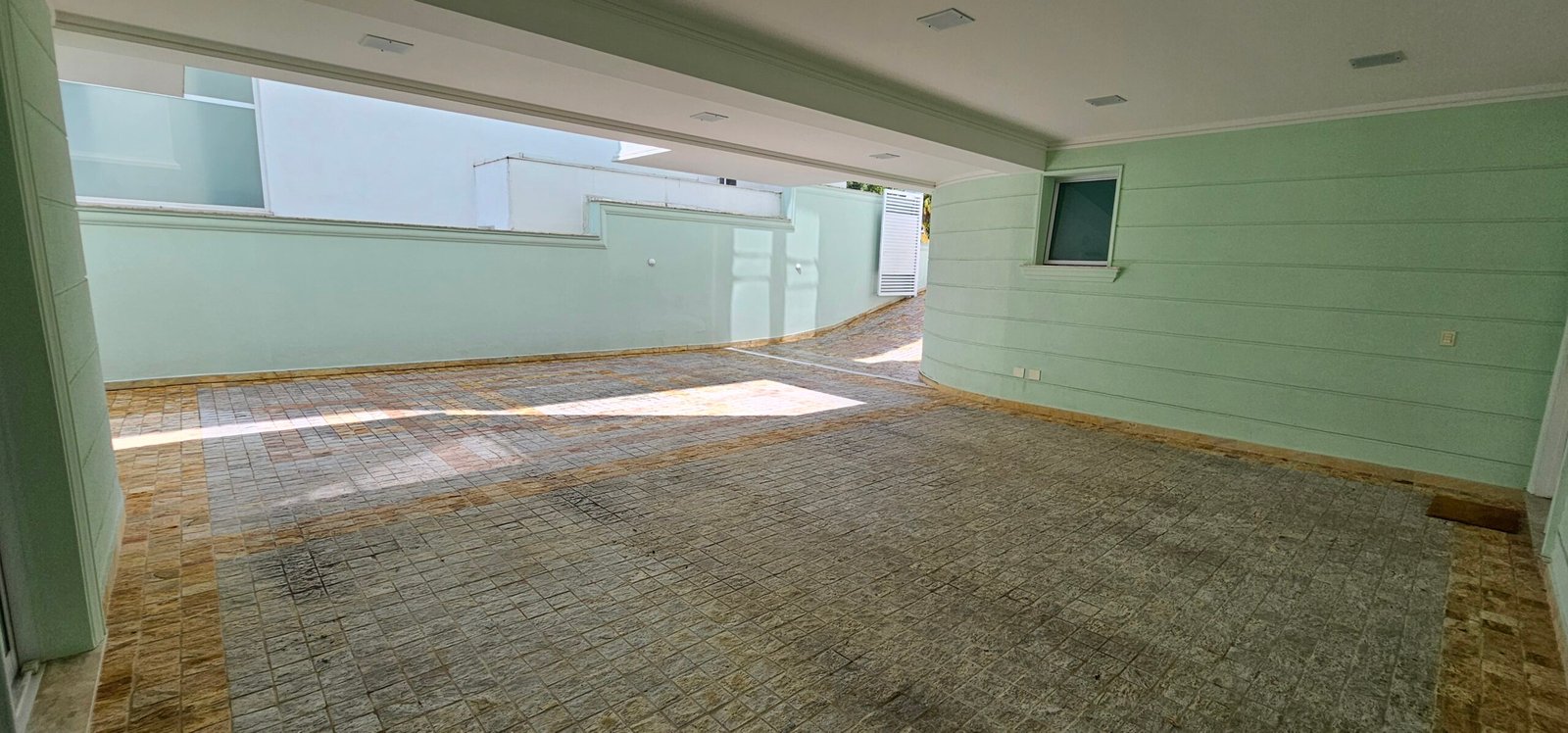 A casa conta com uma garagem grande, que comporta até 6 carros.